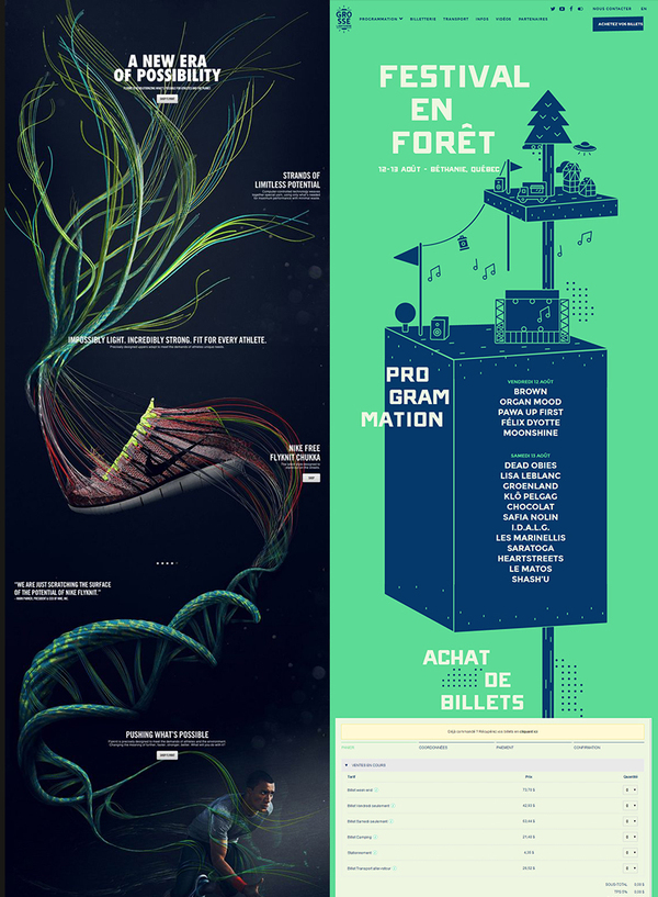 左图1:是典型的绿红配,整体色调的绿色化,使得页面最底部的红瓶子显得格外醒目。在用户按照从上到下的浏览习惯看完后,视线就被定在了这个红色的元素上。