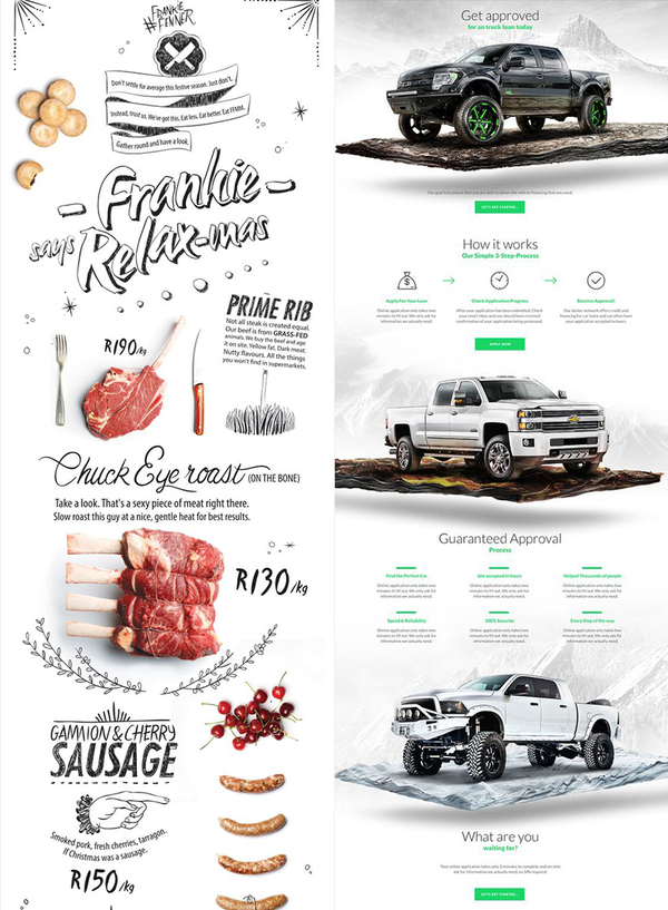 左图1:以手绘的黑白线条为主,用原色的食品形成画面的视觉点,引导用户跳跃式的浏览;