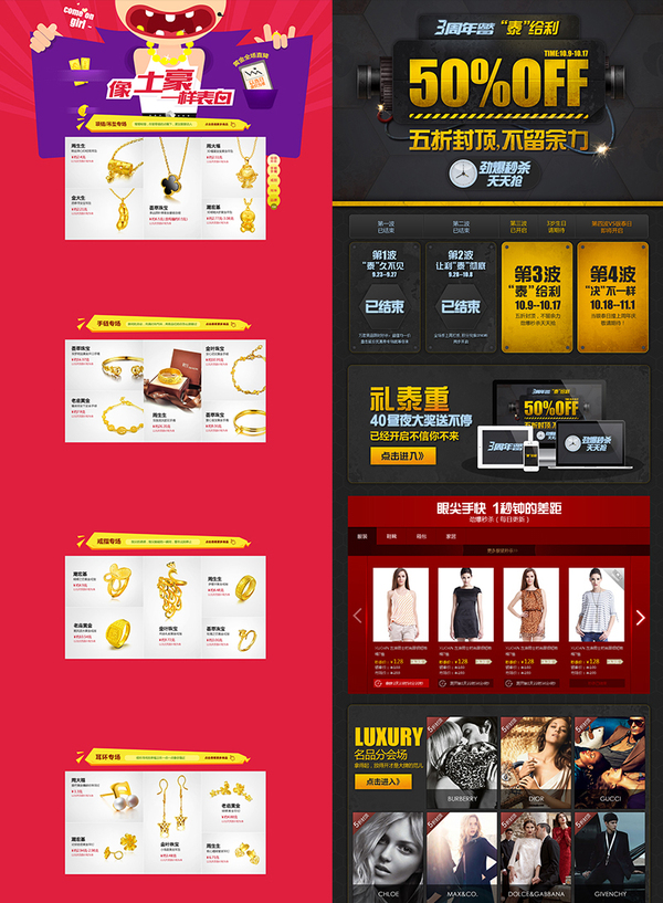 右图1:五折封顶 不留余力,设计师通过文案的发散,绘制了一个正在点燃的机器,像是要引爆全场的感觉。