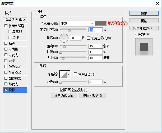 9.最后再复制图层(椭圆2),命名为:阴影,放在图层(椭圆2)下面,填充颜色:#726c65,羽化一下。给图层添加图层样式
