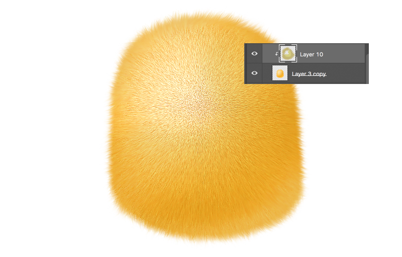 复制眼白部分的圆形,放大,然后添加图层样式,让它有一个眼眶的感觉,然后“滤镜-高斯模糊”。最后用“涂抹工具”选择毛发笔刷耐心的涂抹出眼眶周围的毛~一只眼睛就这样完成啦!如下图: