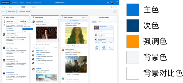 在运用色彩的开始阶段,你可能会感觉到有些困难,我的建议是多看优秀的作品和观察周围美的事物,从中你能够获得很多优秀的色彩搭配灵感,从而提升你对色彩的认知。同时,在设计的开始阶段,尽可能选择柔和或中性的色彩作为背景,仅在需要引起用户关注的元素或按钮上使用色彩。随着时间的推移,你会做得越来越好。