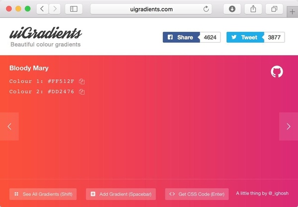 iOS中非常多地使用漂亮的渐变效果。通过选取两个相匹配的颜色,然后简单设置就能产生渐变效果。下面是一个收集了很多渐变效果的优秀集合。