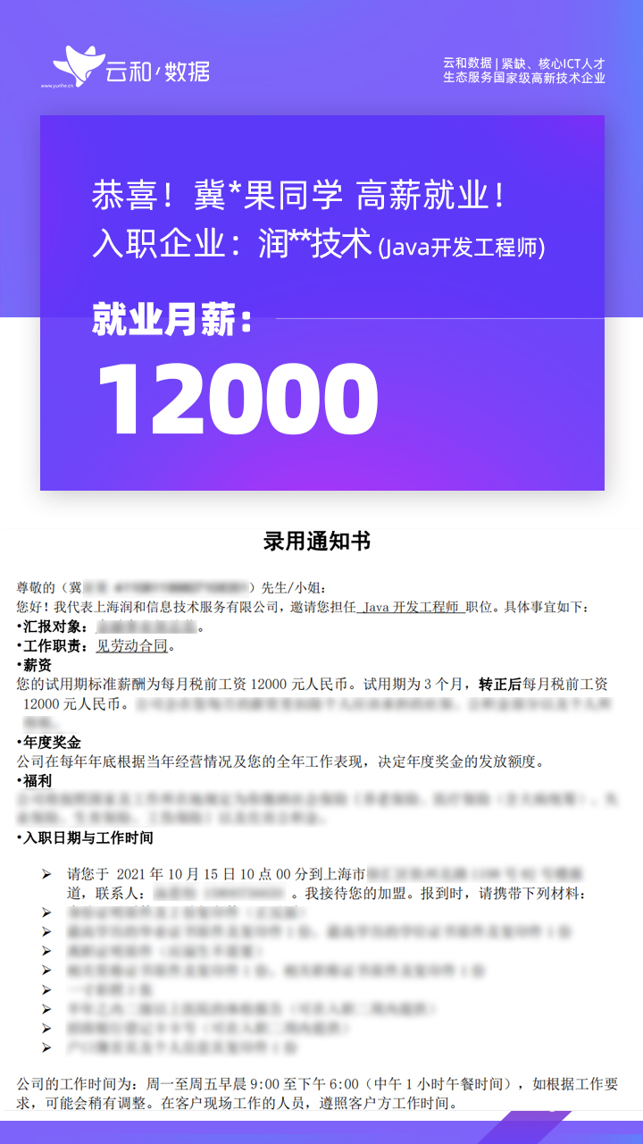 【云和数据更好的就业】 与优秀的人同行 突破自我 高技能加身,专业的就业服务,名企、高薪都不是问题!