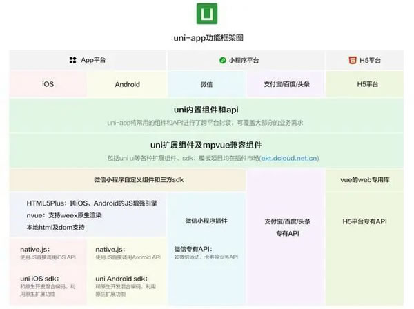 (1) uni-app–开发一次,多端覆盖 uni-app 是DCloud公司使用 Vue.js 开发跨平台应用的前端框架,开发者编写一套代码,可编译到iOS、Android、H5、小程序等多个平台。