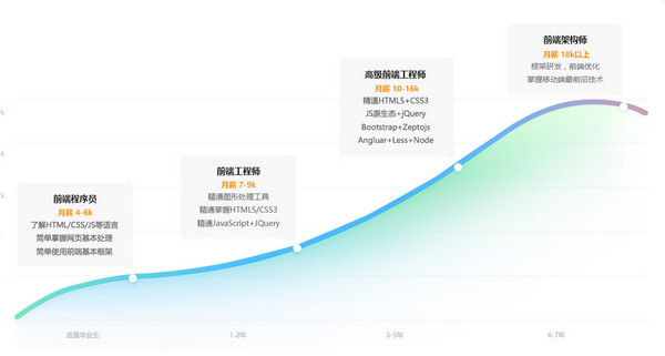 HTML5是近十年来Web开发标准最具大的飞跃,是最新一代的Web语言。对于想要好好学习这门课程的学员,学习时间短,仅仅用四个月时间从入门到精通,并且所学内容不仅限于HTML5,还有Web前端,让学员在有限的时间掌握更多的知识技能。