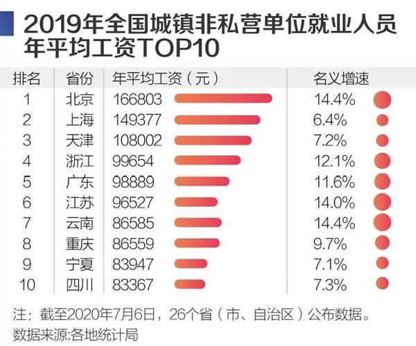 随着全国各地平均工资陆续出炉,从未来的收入角度看,答案渐渐清晰。据21世纪经济研究院统计,截至7月6日,全国已有26个省(市、自治区)公布了2019年城镇单位就业人员年平均工资,为洞悉就业前景提供了新的风向标。