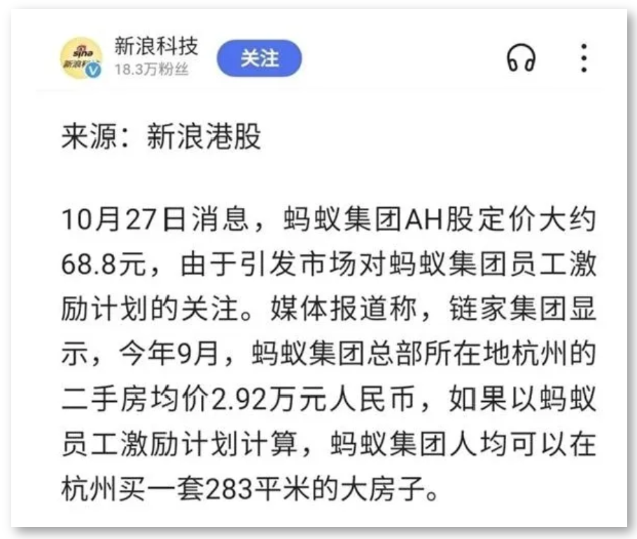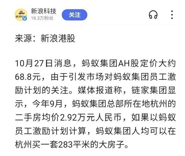 按照68.8元的发行价计算,蚂蚁集团员工及顾问的奖励共计约1377亿元。