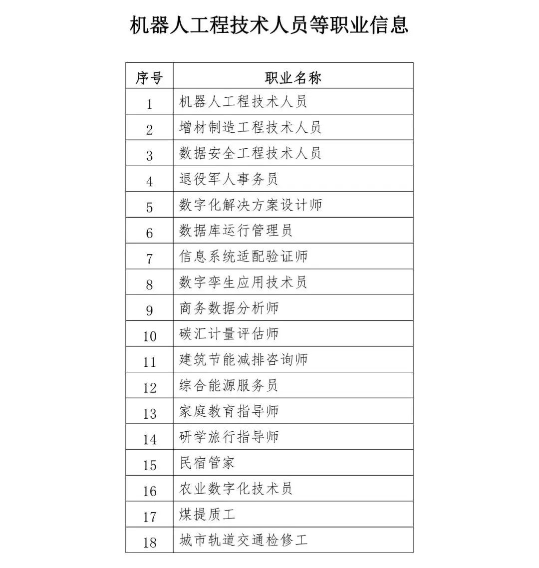6月14日,人力资源和社会保障部向社会公示机器人工程技术人员、数据安全工程技术人员、碳汇计量评估师等18项新职业信息,涉及数字产业、绿色产业等多个新兴领域。