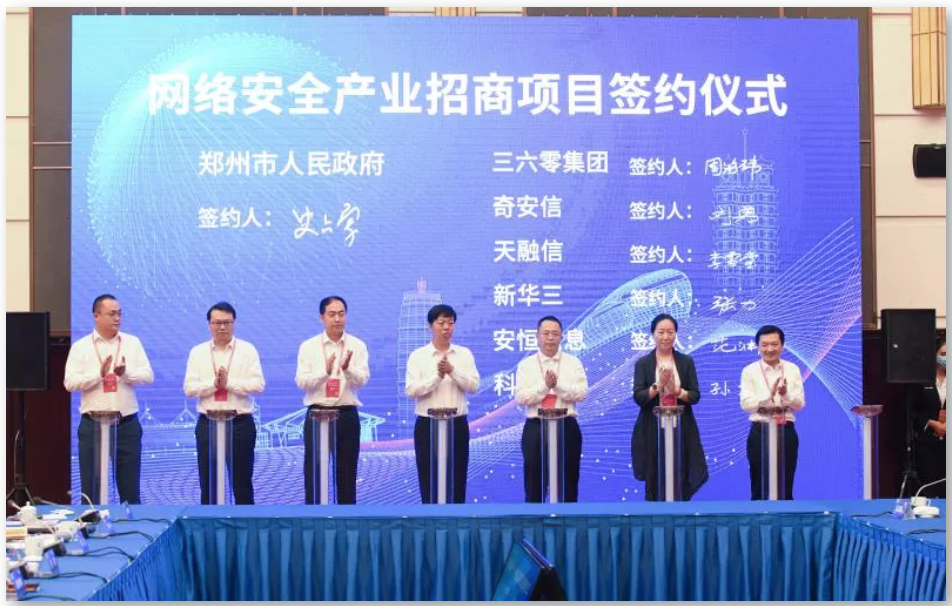 9月14日,三六零安全科技股份有限公司与郑州市人民政府在国家网络安全宣传周产业发展座谈会现场签署了战略协议,将与郑州市强强联合,在郑州高新区建设360中原总部和网络安全产业基地重大基础设施群。