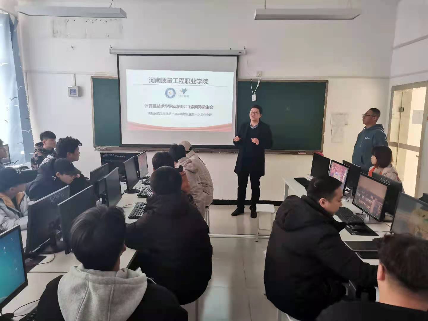 12月4日下午,河南质量工程职业学院计算机技术学院、信息工程学院学生会云和数据工作部第一届成员聘任暨第一次全体会议在Q楼501召开。