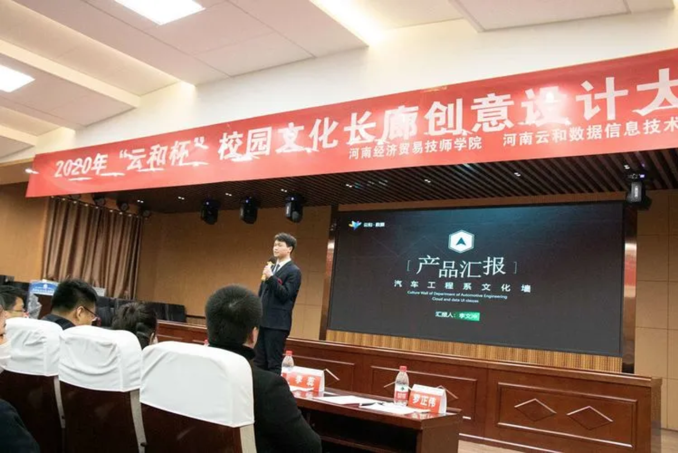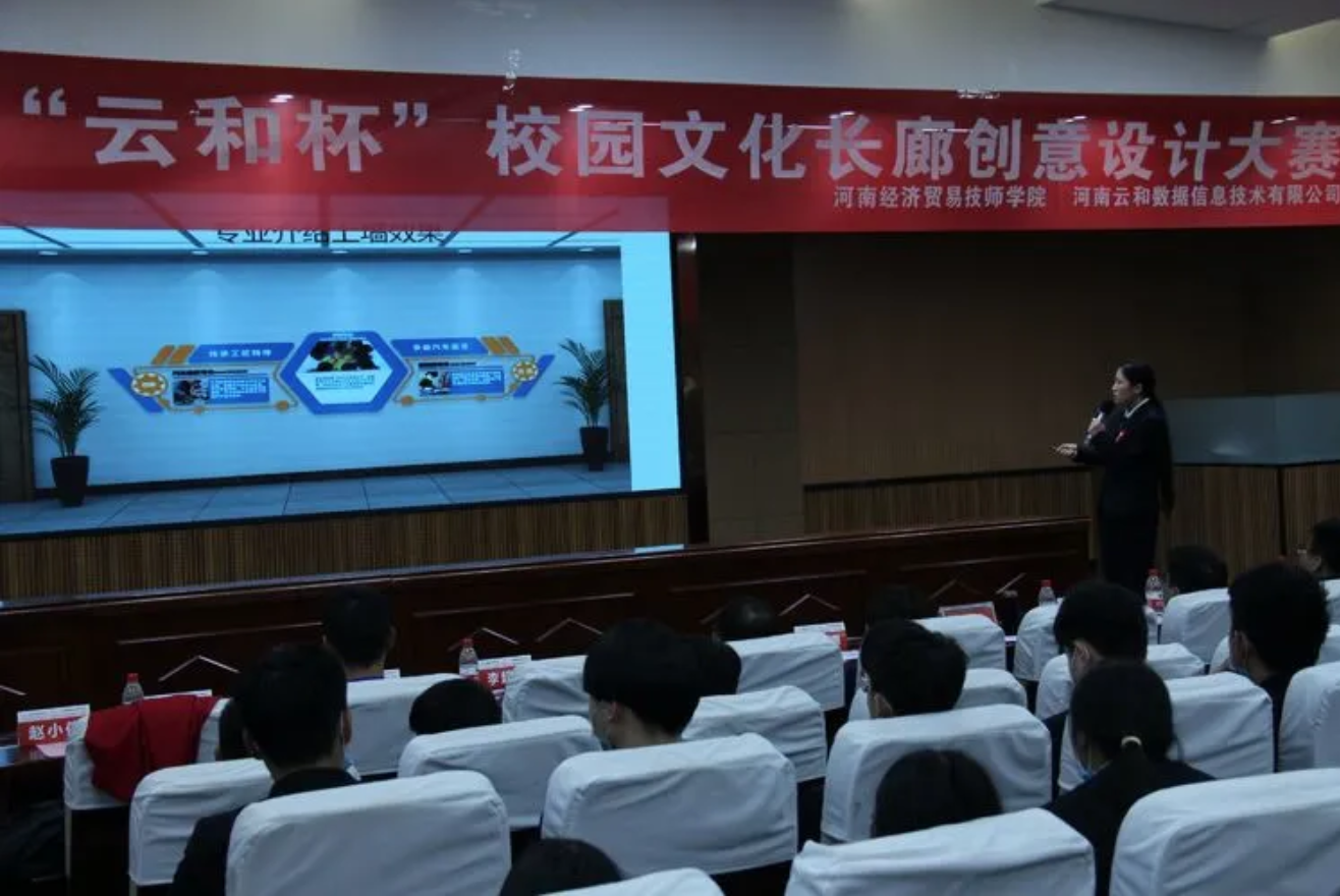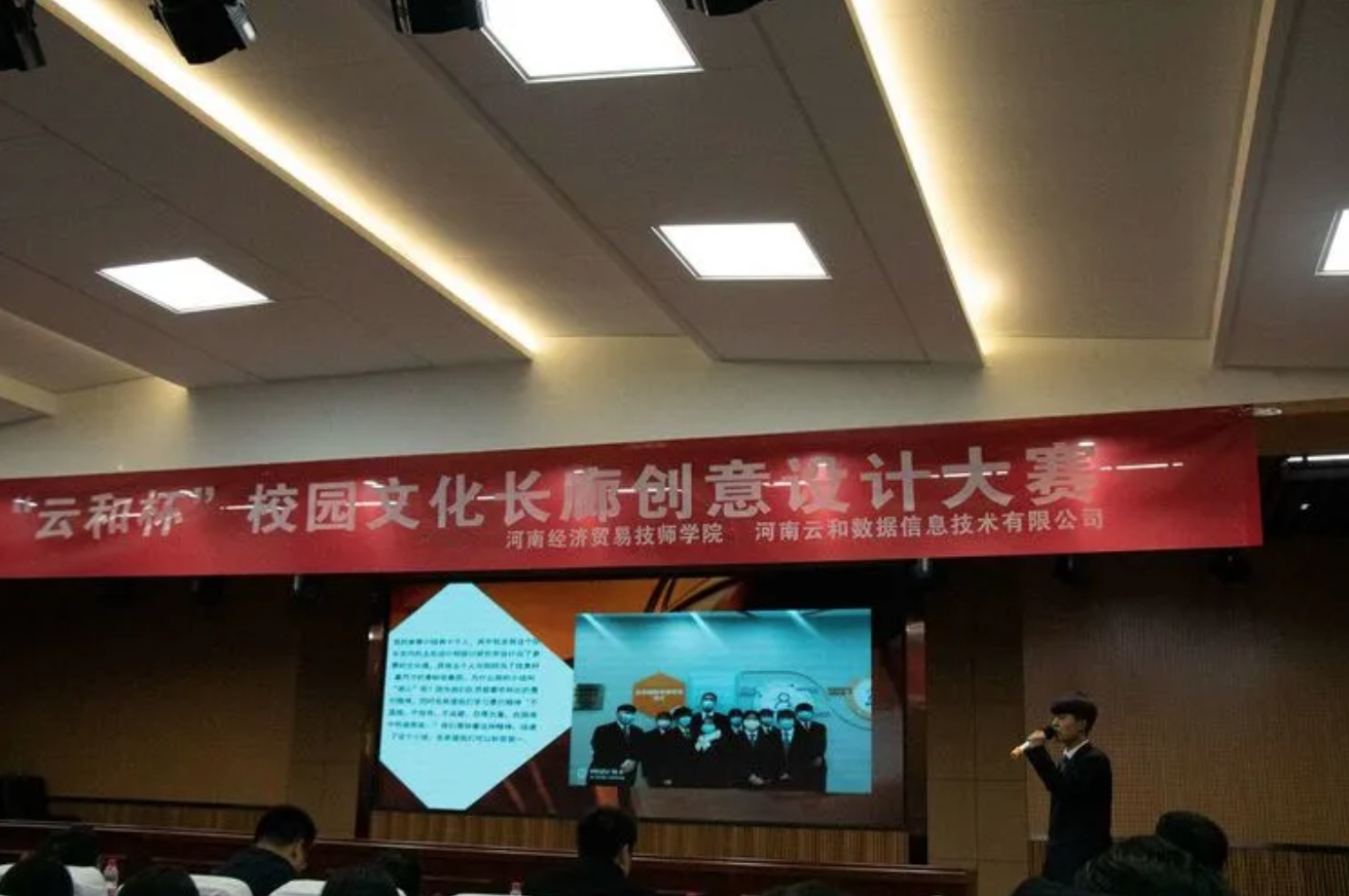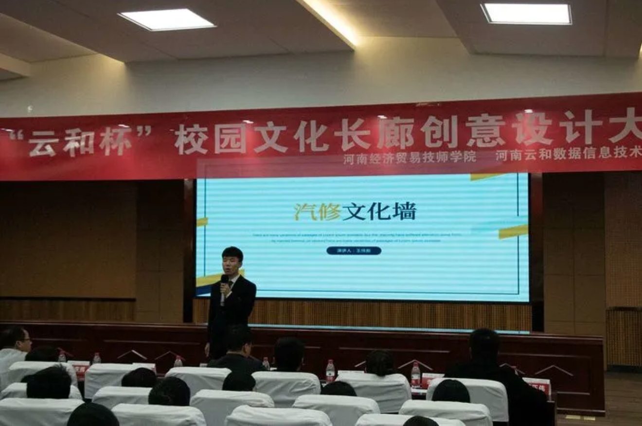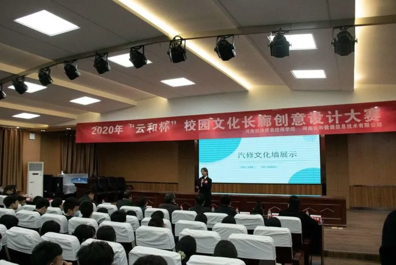2020年12月17日下午,河南经济贸易技师学院的报告厅里热闹非凡,“云和杯”校园文化长廊建设创意设计大赛现场决赛在这里隆重举行。为了进一步丰富校园文化生活,提升学生的专业能力和自主学习能力,培养创新型高素质应用型人才,学院信息技术系云和UI设计专班和汽车工程系联合举行了此次大赛。