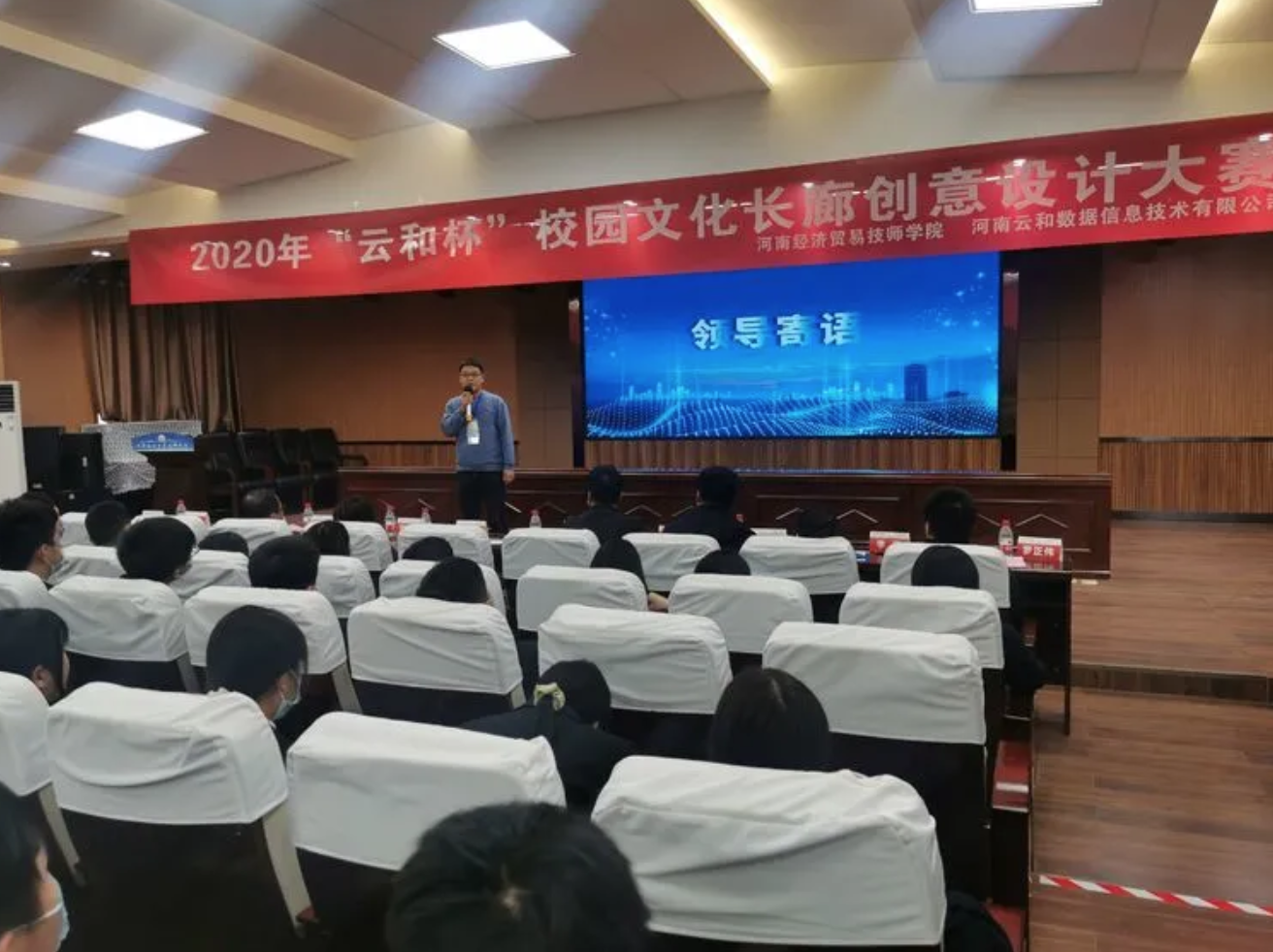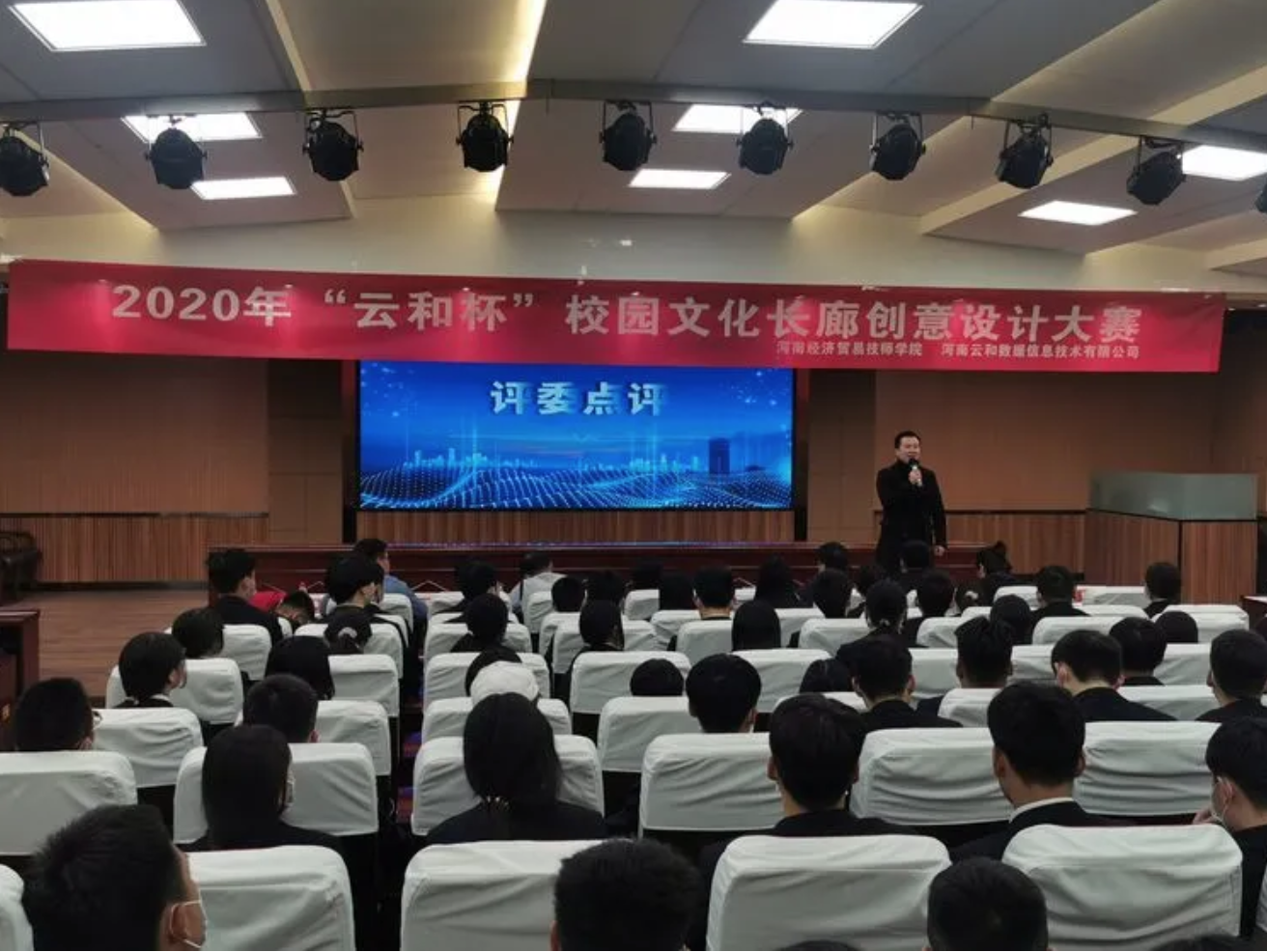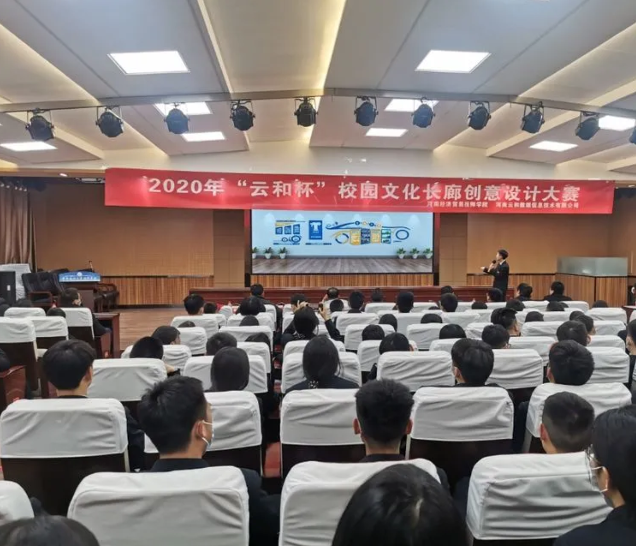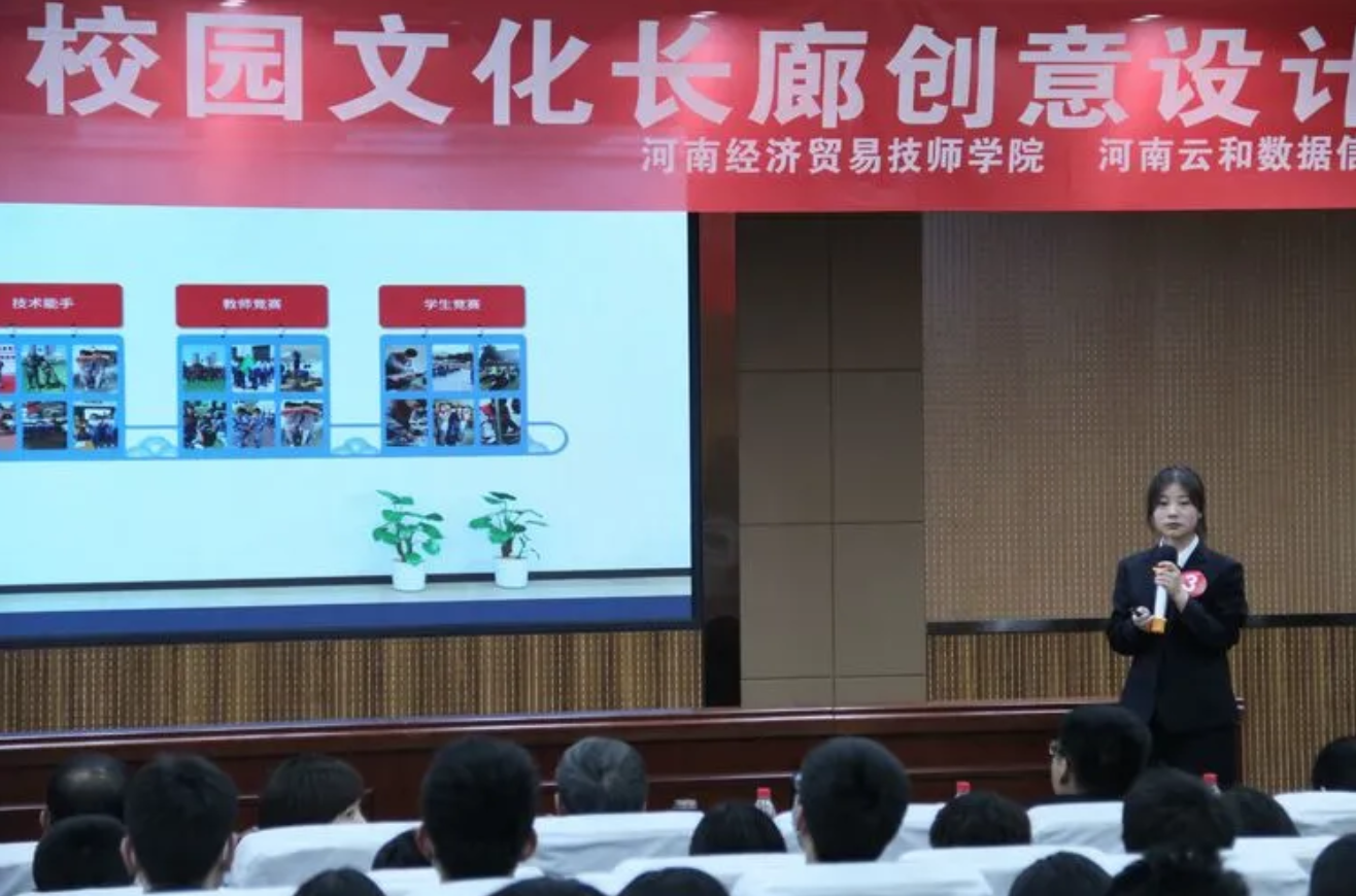 2020年12月17日下午,河南经济贸易技师学院的报告厅里热闹非凡,“云和杯”校园文化长廊建设创意设计大赛现场决赛在这里隆重举行。为了进一步丰富校园文化生活,提升学生的专业能力和自主学习能力,培养创新型高素质应用型人才,学院信息技术系云和UI设计专班和汽车工程系联合举行了此次大赛。