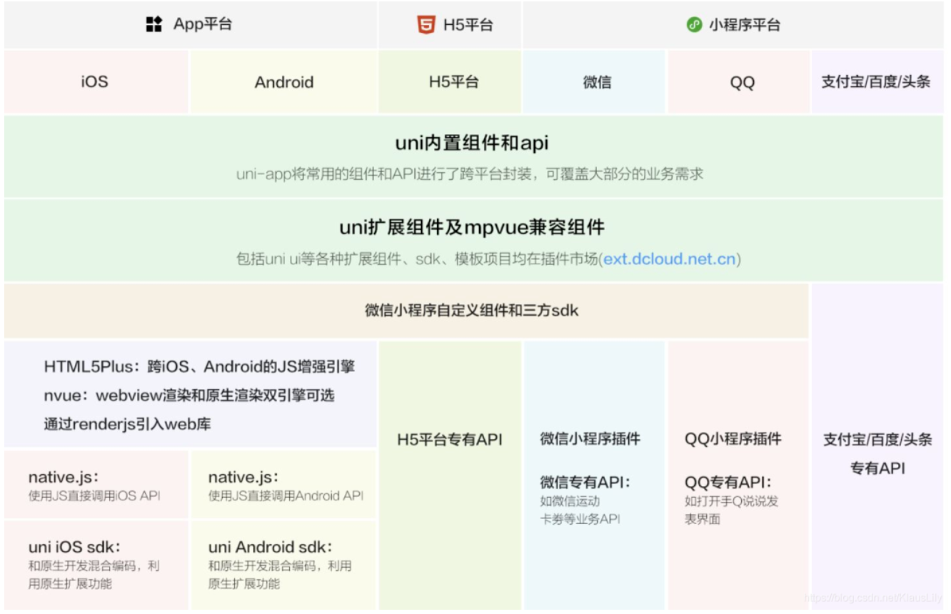这里笔者采用uni的架构来给大家展示跨平台的底层架构: