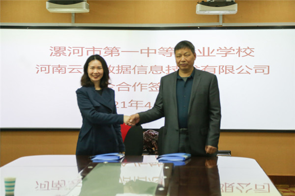 为响应国家关于产教融合、校企合作的政策,深化实践教育创新改革,2021年4月13日上午,云和数据与漯河市第一中专校企合作专业共建签约仪式在漯河市第一中办公楼三楼举行。