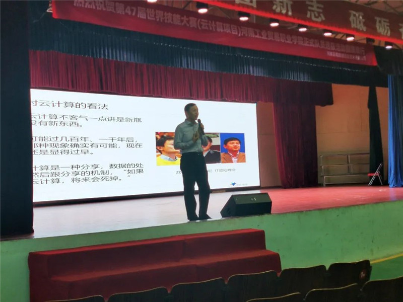 为更好地备战第47届世界技能大赛,确保河南省云计算、移动应用开发等项目选拔集训工作的顺利展开,4月27日,云和数据作为第46届世界技能大赛云计算项目河南省集训基地、郑州市集训基地,来到了河南工业贸易职业学院,由云和数据副总经理陈涛给工贸的学生们带来一场关于“世界技能大赛”的专题讲座。