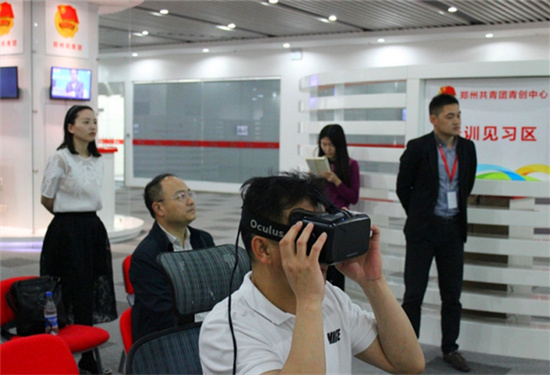 随后,在邢经理的引领下,孙局长和李董一同走进云和数据技术体验中心,孙局长听取了公司关于Unity虚拟现实技术应用报告,并亲自体验了公司基于Unity3D开发的虚拟现实房地产项目应用。