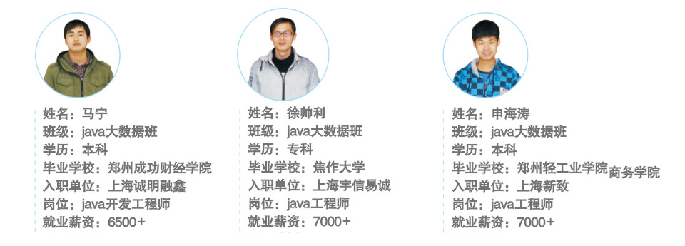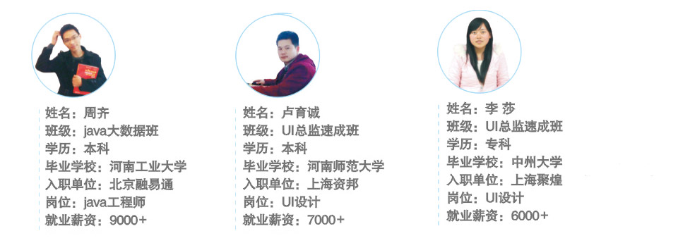 学员高薪就业是我们最基本的目标,学员能满意是我们最根本的追求。这就是我们,一家真正为学员着想,一切以学员为中心,讲诚信,敢说真话的专业IT培训机构!选择我们值得信赖!