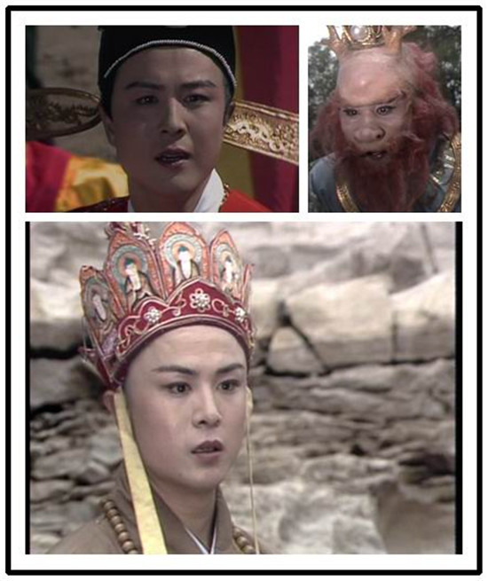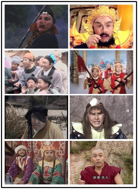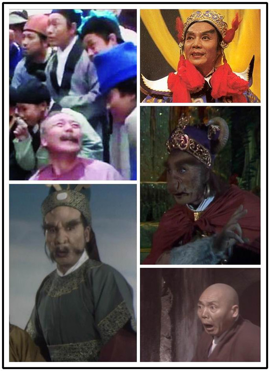 六小龄童——孙悟空、长安茶客、姨婆、九尾狐狸、车迟国老道、观音院小和尚、金光寺的和尚、中年道士、三清观山寨元始天尊、麒麟山道士、镇海寺小喇嘛、假悟空、金兜山南小妖怪、路遇山贼小和尚、总钻风、白无常。