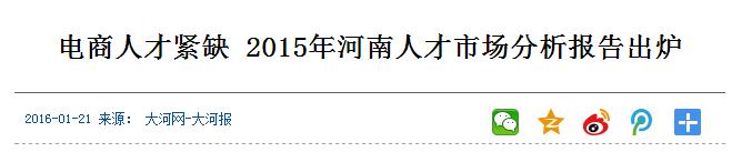 1月20日,“2015年河南人才市场分析报告”新鲜出炉,人才市场的招聘求职,往往可以折射出社会的风向标,那从2015年的才市分析报告中又能挖掘出什么大趋势呢?