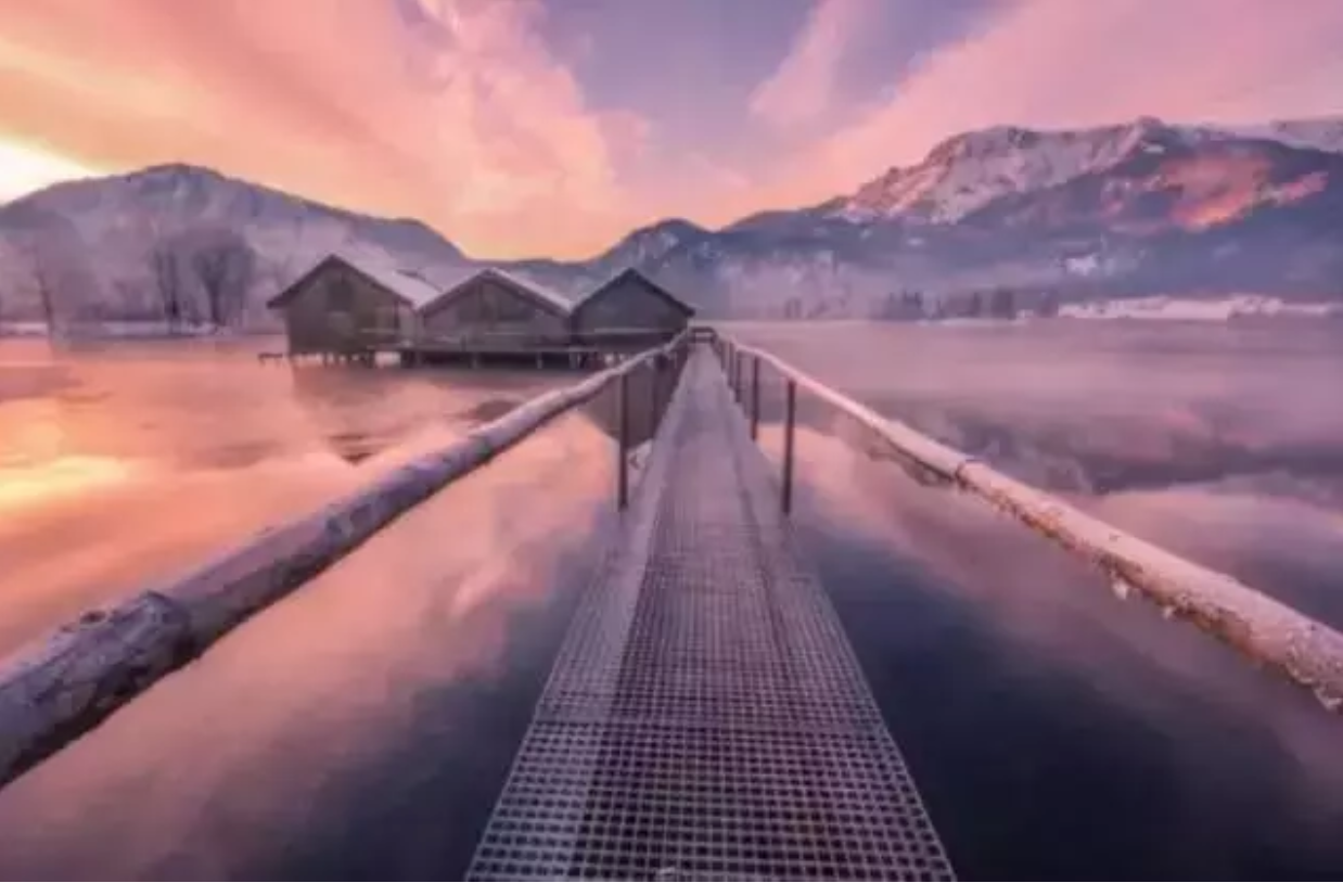 二点透视:适合表现在一定距离外偏平视的高度不高的物体和空间。
