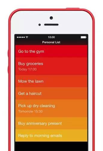 这个方案相对容易使用,其诀窍是选择哪种颜色作为主调色来突出。 例如,Clear,一款手势操作任务管理APP ,它使用相近的色彩,从视觉上区分任务的优先级。