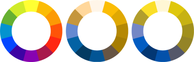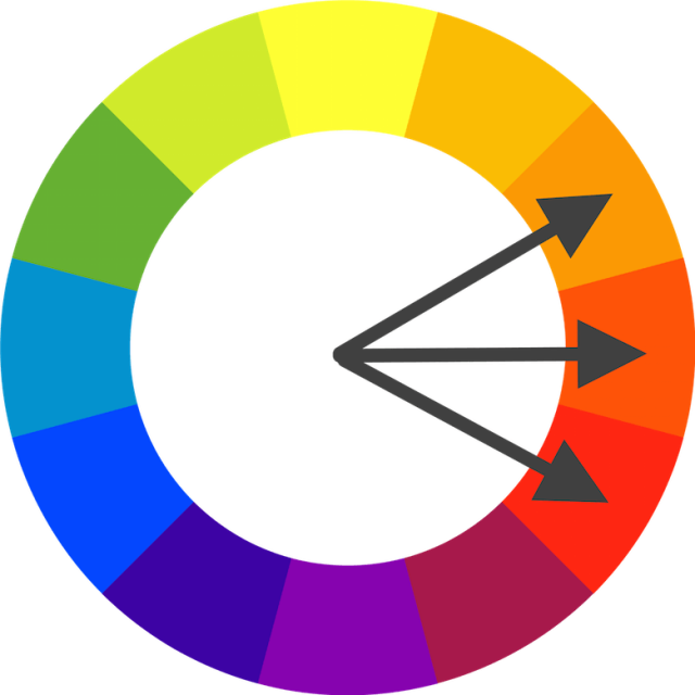 △ 相近色配色方案是由在十二色环图中相邻的三种色彩创建的。